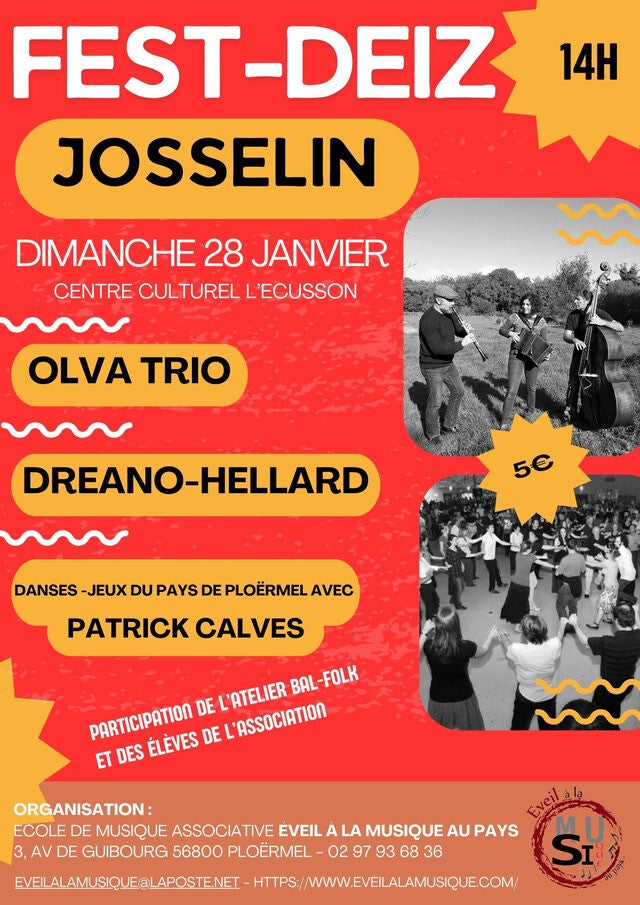 Après la performance de l'atelier Bal Folk très appréciée du public, nos élèves se sont de nouveau produits au Fest Deiz de Josselin le 28 janvier 2024 au côtés de groupes exterieurs. Les danseurs ont pu retrouver une ambiance conviviale et faire de belles rencontre autour de la musique traditionnelle bretonne.