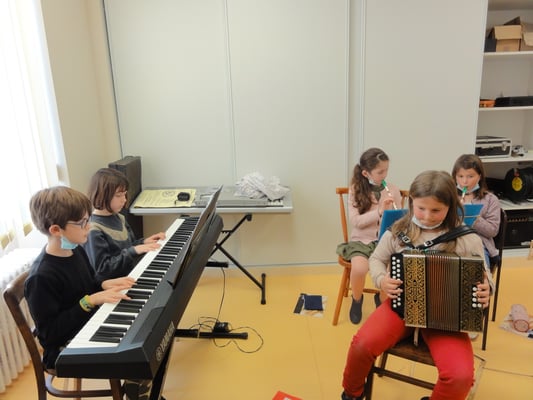 - 45min avec Laurent pour faire de la musique d'ensemble. Les élèves apprennent à jouer ensemble avec leur instrument.